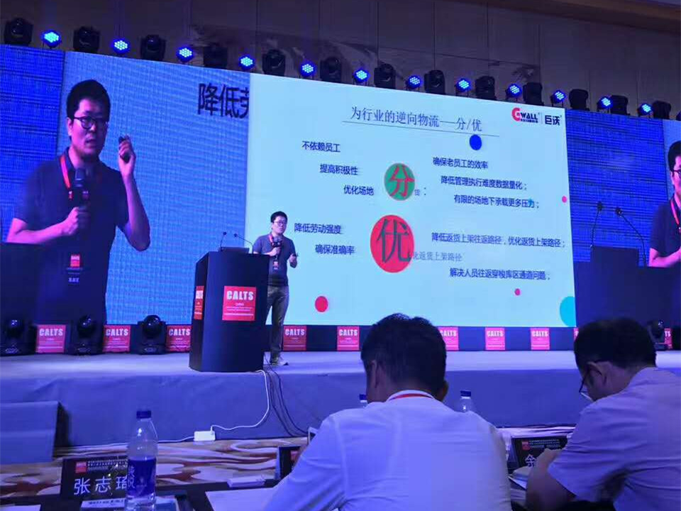 巨沃首席顾问冯滨先生受邀在现场演讲,讲述十余年来巨沃致力于仓储解决方案智慧化进程中积累的经验以及取得的成果。讲述《“零库存”趋势下的仓储物流服务与价值》。冯总着重讲述了鞋服行业退货难点,首次提出“逆向物流”观点,将商品上架理论融合到退货流程,另辟蹊径在退货难的泥淖中探索出一片新天地。